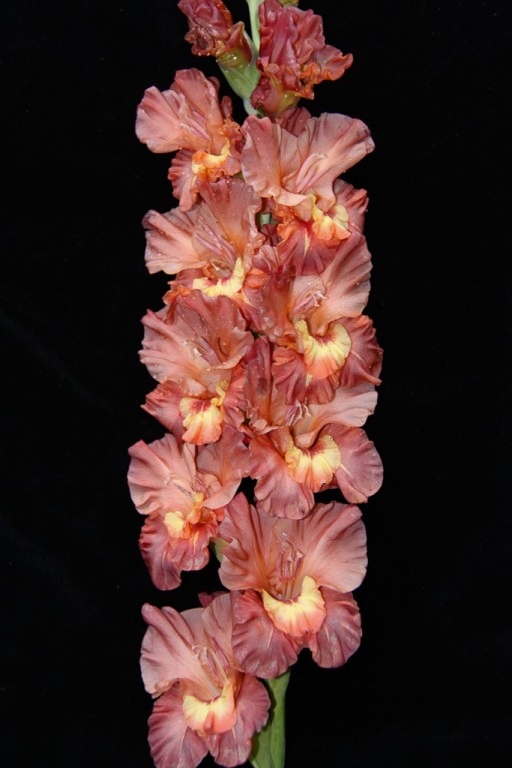 Исключительно стройный с салатовыми цветками, низ цветка окрашен чуть темнее. Прекрасно уложенный колос супергофрированных с защипами в горле цветков. Дипломант